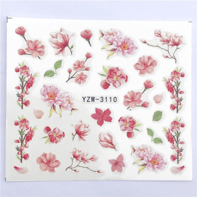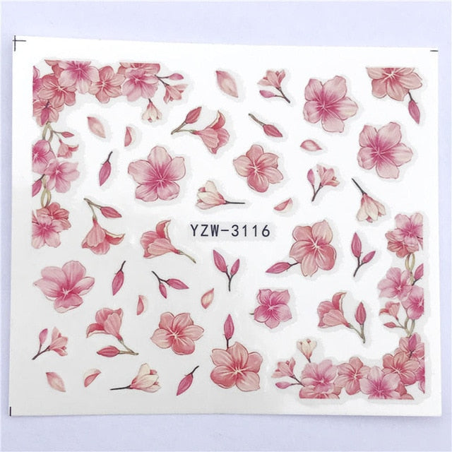 YWK 1 Sheet Pink Flower Water Transfer Slider for Manicure Nail Art Decoration Nail Sticker